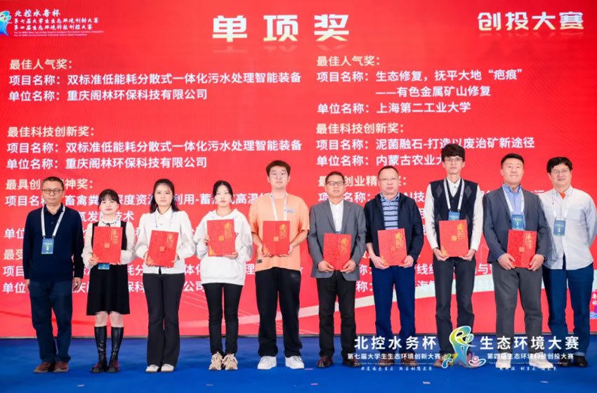 2024年11月2日,北控水務(wù)杯第四屆生態(tài)環(huán)境科技創(chuàng)投大賽總決賽在重慶圓滿收官。我司以《雙標準低能耗分散式一體化污水處理智能裝備》項目參賽,榮獲冠軍、最佳人氣獎、最佳科技創(chuàng)新獎、最受投資人青睞獎四項獎勵!