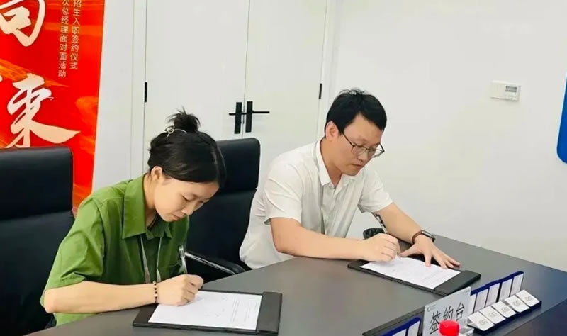孫通博士代表公司與校招生簽訂勞動合同協(xié)議,并逐一握手合影,再一次感謝他們對閣林環(huán)保的選擇。
