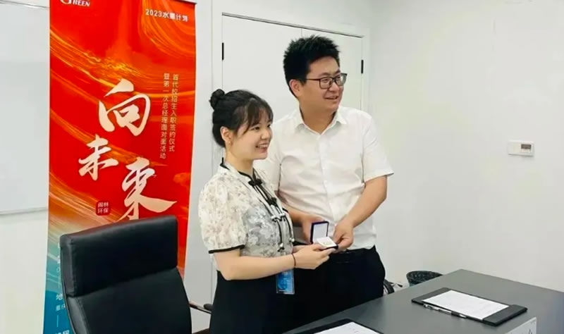2023年7月3日,閣林環(huán)保首代校招生入職簽約儀式在公司舉行,9位應(yīng)屆畢業(yè)生帶著才華橫溢、青春熱血來此逐夢遠(yuǎn)航。總經(jīng)理李果博士、常務(wù)副總經(jīng)理孫通博士、副總經(jīng)理董榮及各部門負(fù)責(zé)人參加儀式歡迎他們的到來,并給予寄語與希望。