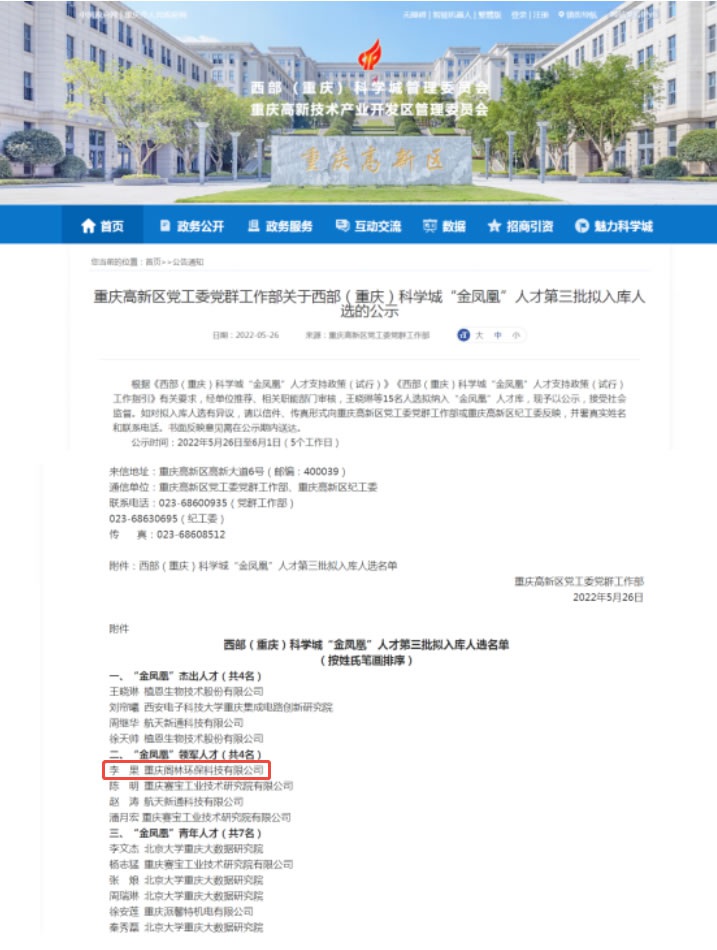 - 【喜訊】閣林環(huán)保總經(jīng)理入選西部(重慶)科學(xué)城“金鳳凰”人才庫