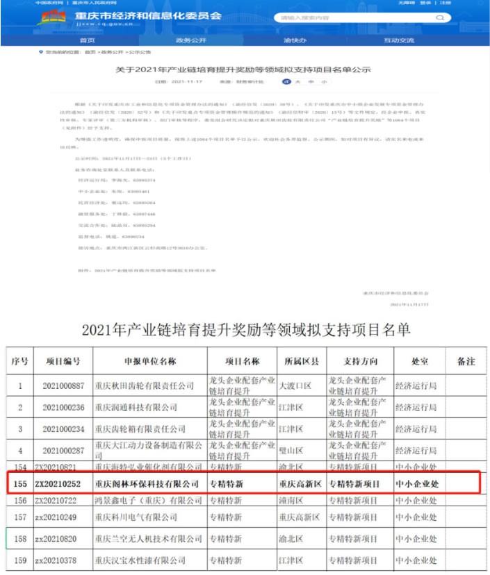 此次榮獲重慶市“專精特新”項目支持企業,不僅是對閣林環保研發創新能力的肯定,更是對公司技術實力、產品能力、服務水平、品牌影響力、發展前景等方面的高度認可。