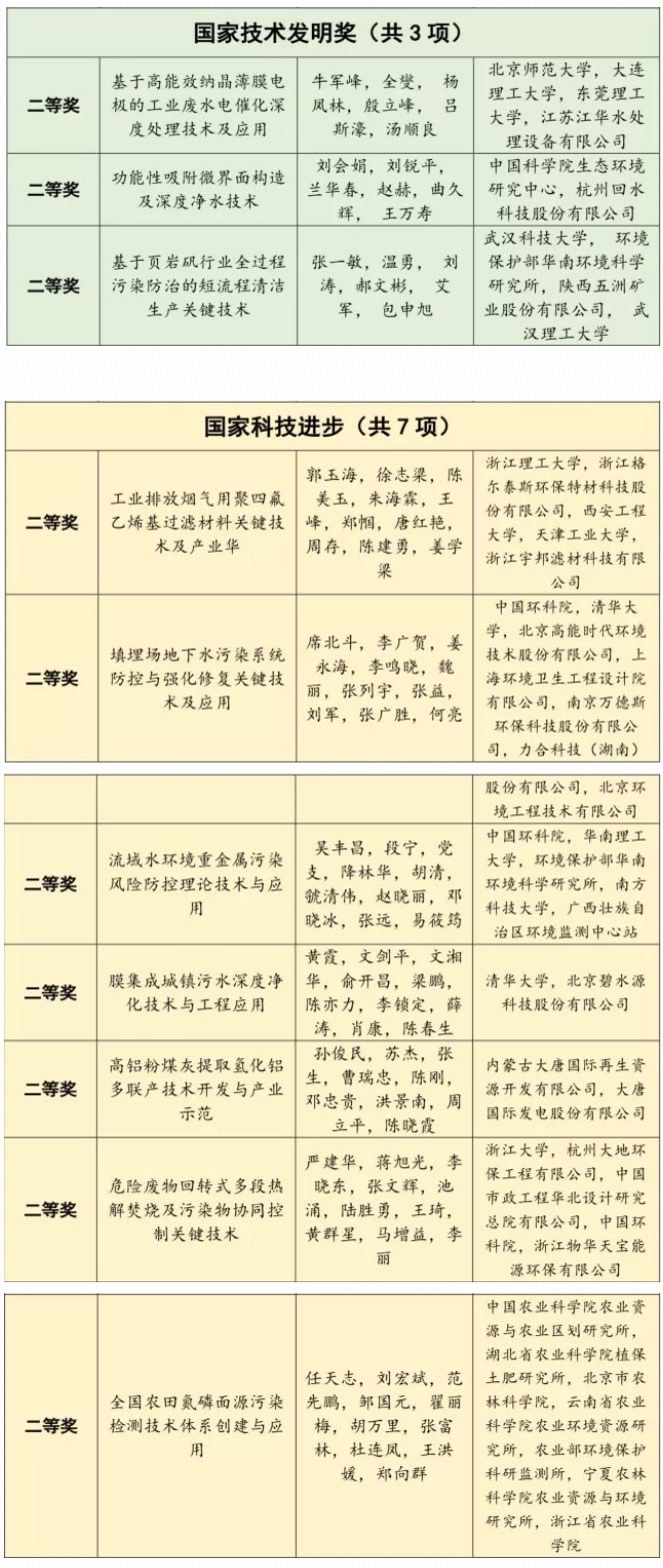 環境領域全部的國家科學技術獎,一共有13項(占獲獎總數近5%),包括3項國家自然科學獎、3項國家技術發明獎和7項國家科技進步獎,涉及水污染控制、廢氣處理、土壤修復、固廢處理、清潔生產等多個分領域。