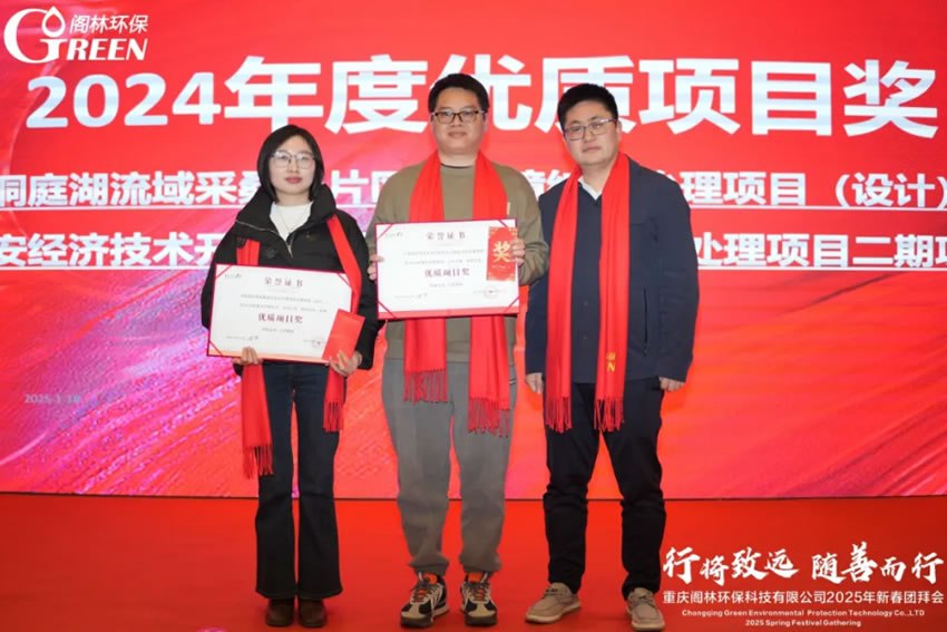 項目負(fù)責(zé)人唐洪平(中)接受公司“2024年度優(yōu)質(zhì)項目獎”表彰